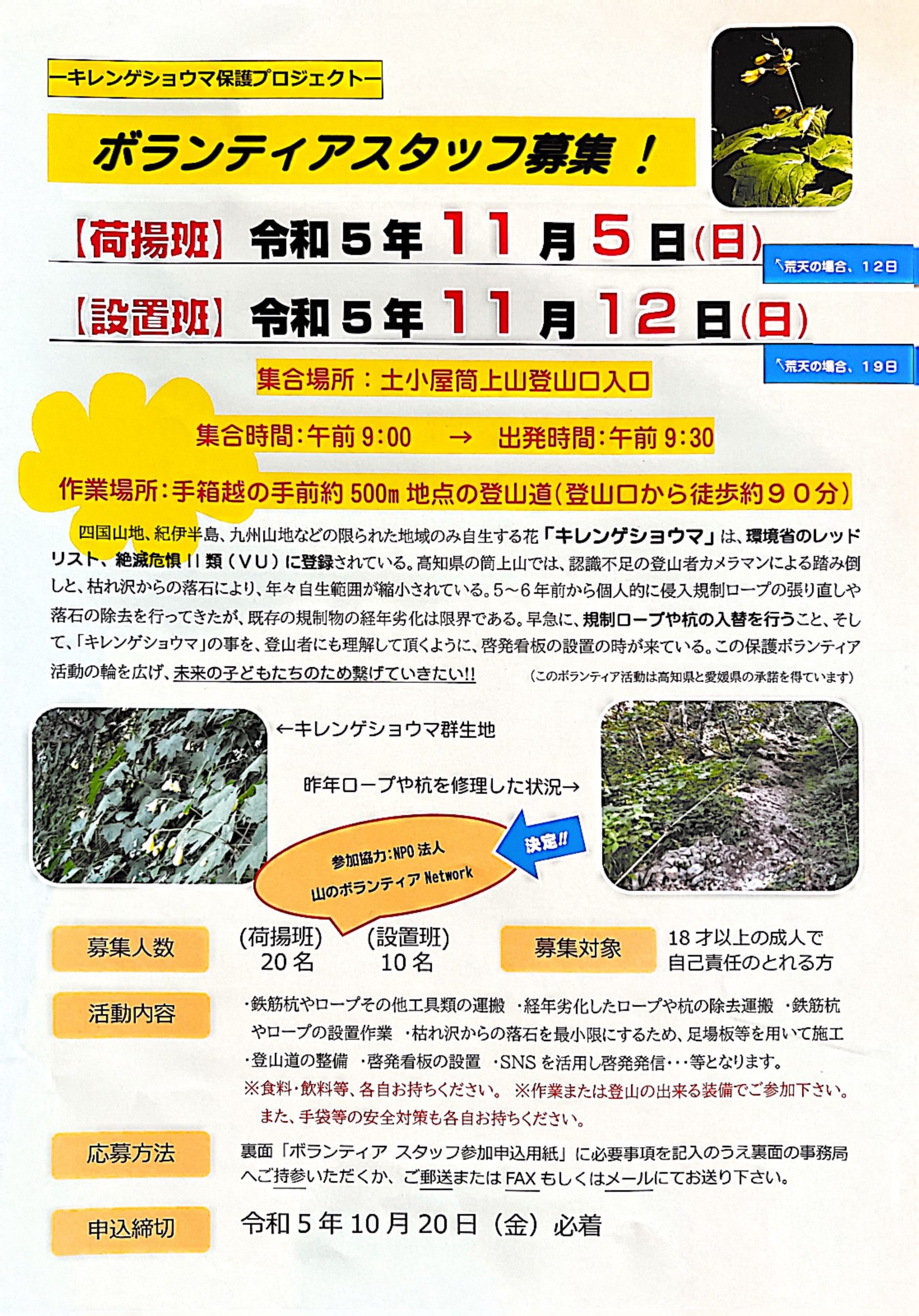 -キレンゲショウマ保護プロジェクト-ボランティアスタッフ募集!!