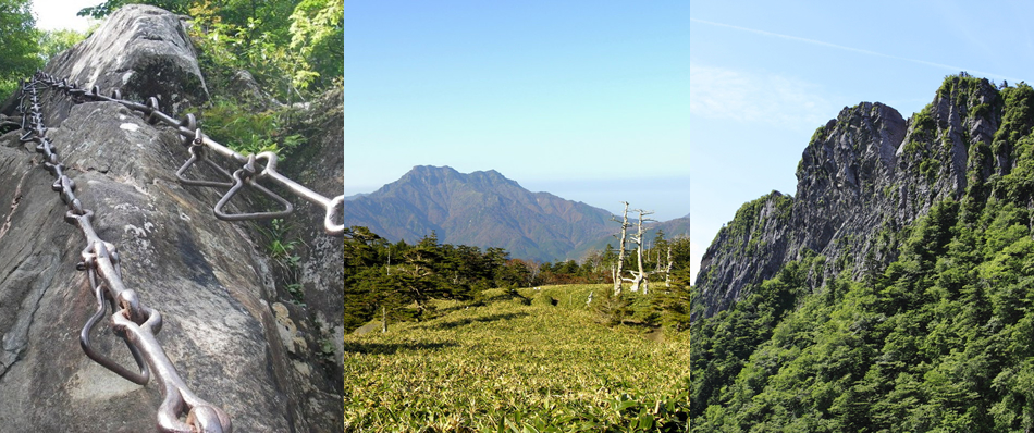ロープウェイから石鎚山頂までは約2時間30分。全長約3.6㎞で、険しい登り道が多いルートです。