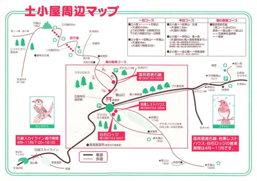 下記の「土小屋周辺マップ」をクリックすると、拡大画像が表示されます。