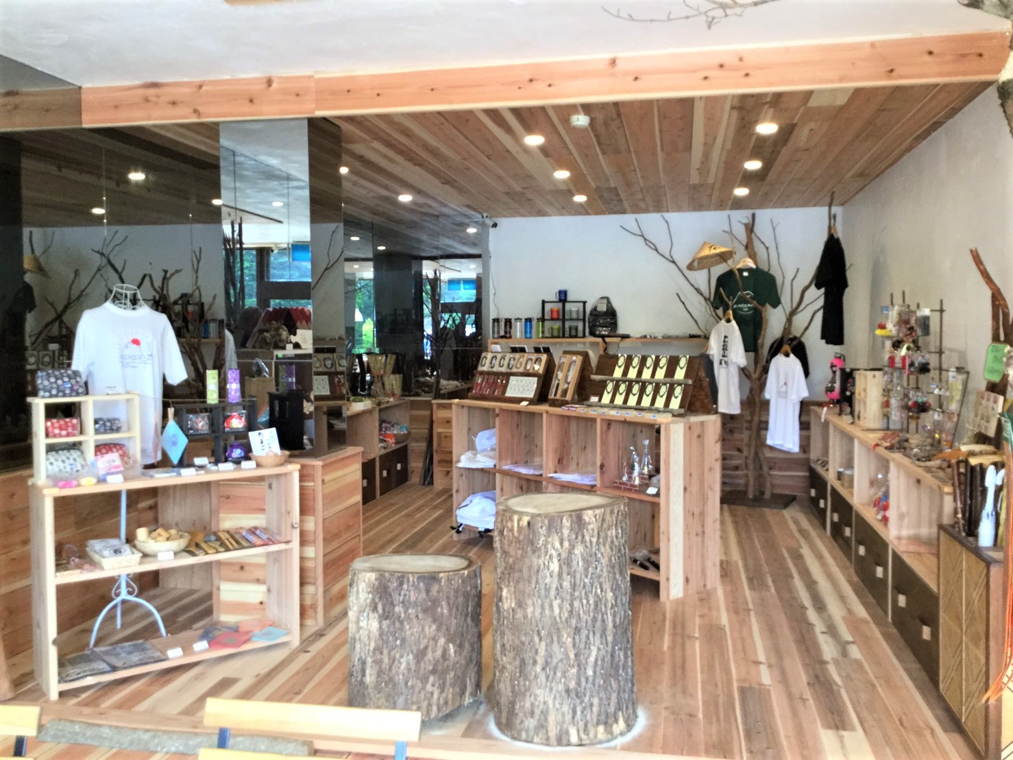 久万高原の杉材をふんだんに使い窓から柔らかな光が差し込む開放感のある店内には、mont-bell friend shopとして登山に対応したちょっとしたギアを置いてあったり、土小屋限定モンベルコラボグッズなど、ここでしか買えないアイテムも多数ありますので是非お立ち寄りください。